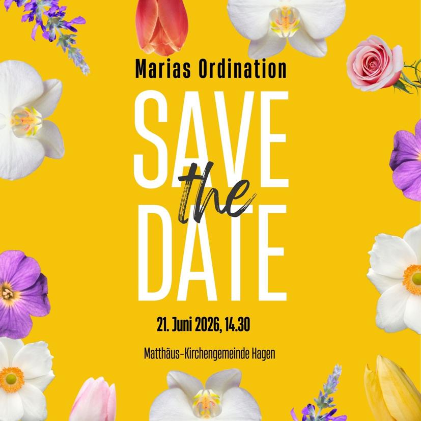 ihre Ordination in der Matthäuskirche. Die ganze Gemeinde ist dazu eingeladen und