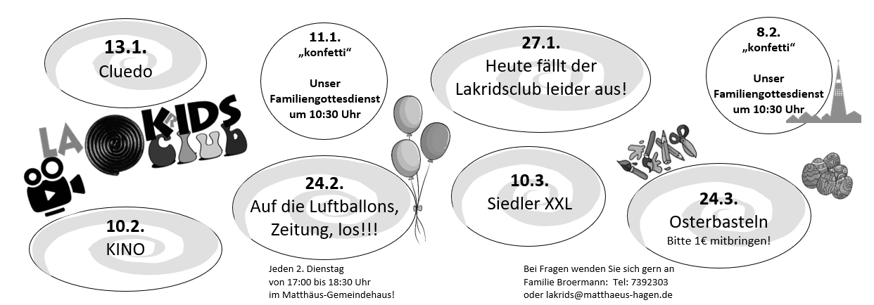 Der LAKRIDS-Club ist ein Angebot für Kinder im Alter von 6 bis 11 Jahren. Jeden Dienstag Nachmittag treffen sich seit November 2023 wieder rund 40 Kinder in unserem Gemeindehaus, um dort ein tolles Programm zu erleben.
